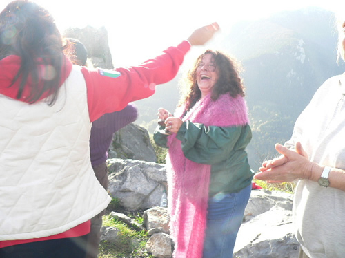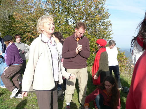 Así, empezamos nuestro primer trabajo en grupo creando un Templo de Luz dedicado a la Rosa Sagrada, los patrones geométricos de Luz que mantienen las Energías Divinas Femeninas y Masculinas perfectamente equilibradas. Después, este templo etérico quedó emplazado en el campo etérico que se encuentra sobre Montségur y su castillo, para funcionar como un Faro de Luz para las energías de la Unión Sagrada, así como para ayudar a la activación de las geometrías de la nueva flor de la vida, la “Rosa Sagrada”, que son las geometrías de las rejillas del corazón sagrado de la Nueva Tierra. Al día siguiente todo el grupo sacó su mejor forma física y todos juntos escalamos la montaña hasta el castillo para realizar la ceremonia de activación del Templo de Luz. Aquí hay algunas imágenes del trabajo conjunto del grupo.